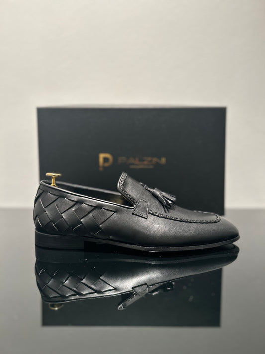 HANDMADE BLACK LEATHER TASSEL LOAFERS