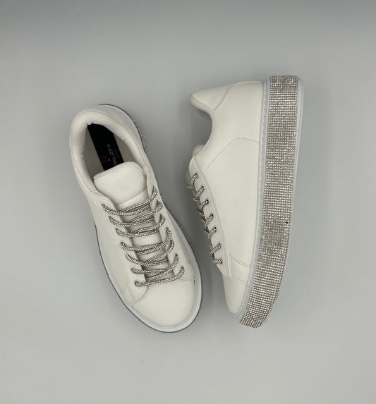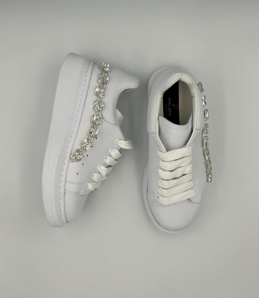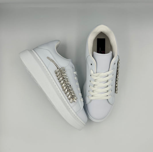 “DIAMANTE” LOW-TOP WHITE SNEAKERS WITH SILVER JEWEL ACCESSORIES