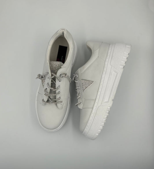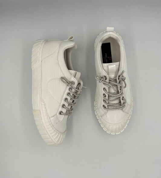 “BIANCO” LOW-TOP WHITE SNEAKERS WITH GLITTER LACES