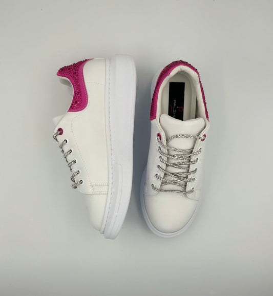 “SERANATA” LOW-TOP WHITE SNEAKERS WITH PINK GLITTER