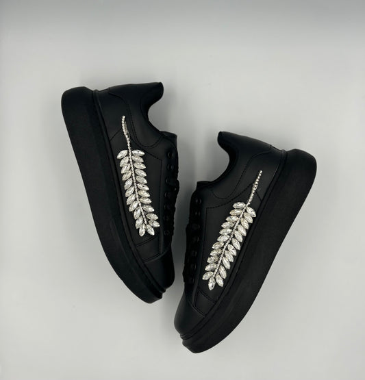 “VITTORIA” LOW-TOP BLACK SNEAKERS WITH LEAF ACCESSORY