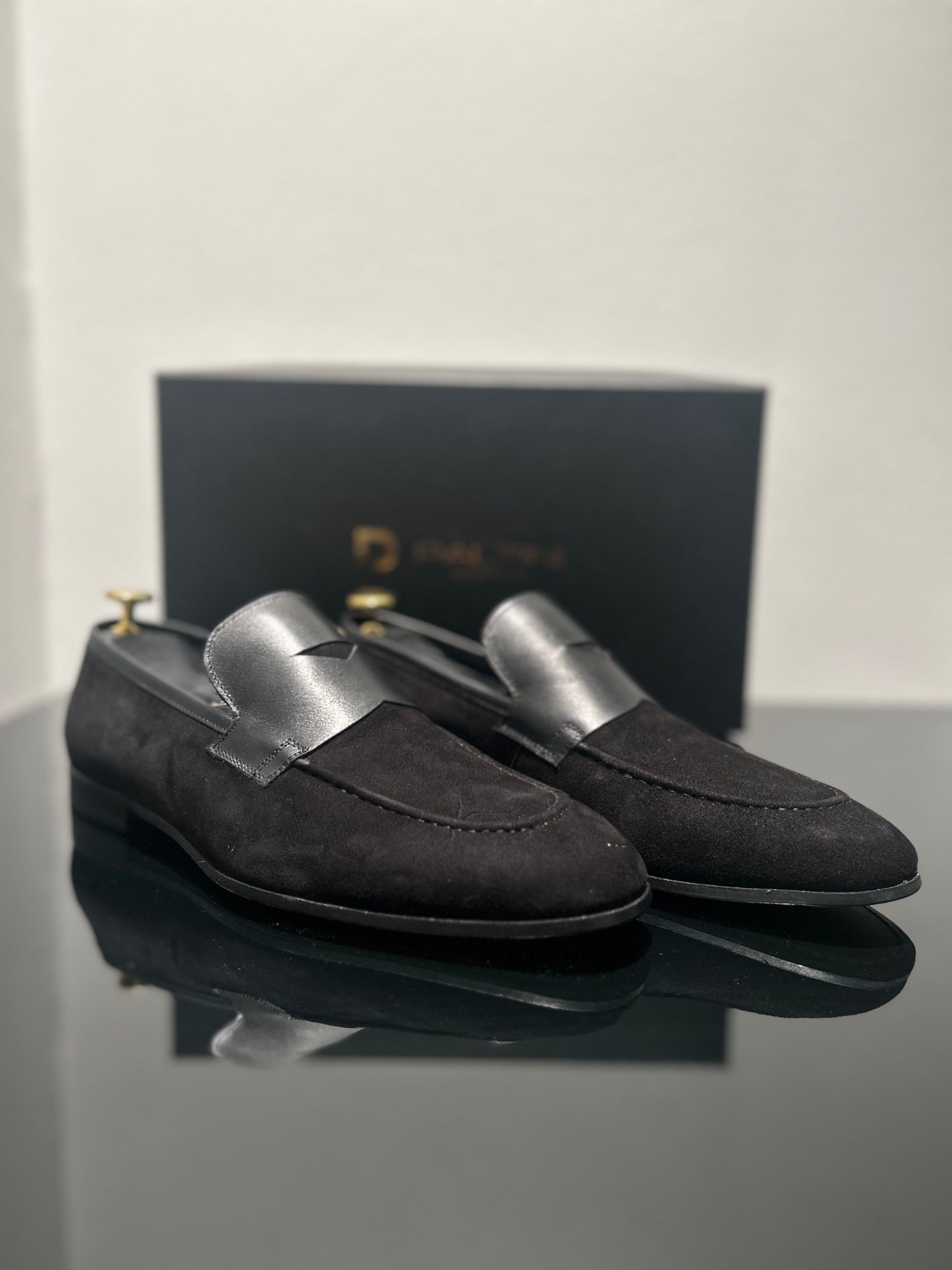 Indulge yourself in the elegance and charm of Palzini Handmade Black Suede Slip-Ons and step confidently into a world where sophistication meets unparalleled comfort. Elevate your footwear collection with Palzini and redefine what it means to walk with style