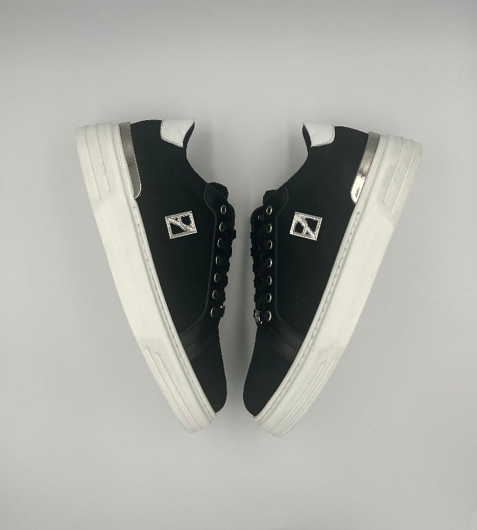 “MANHATTAN” LOW-TOP SNEAKERS IN BLACK SUEDE WITH SILVER ACCESSORIES