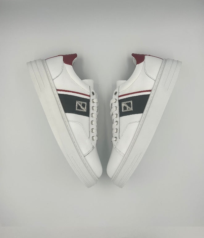 “MANHATTAN” LOW-TOP SNEAKERS IN WHITE LEATHER NAVY AND RED DETAILING