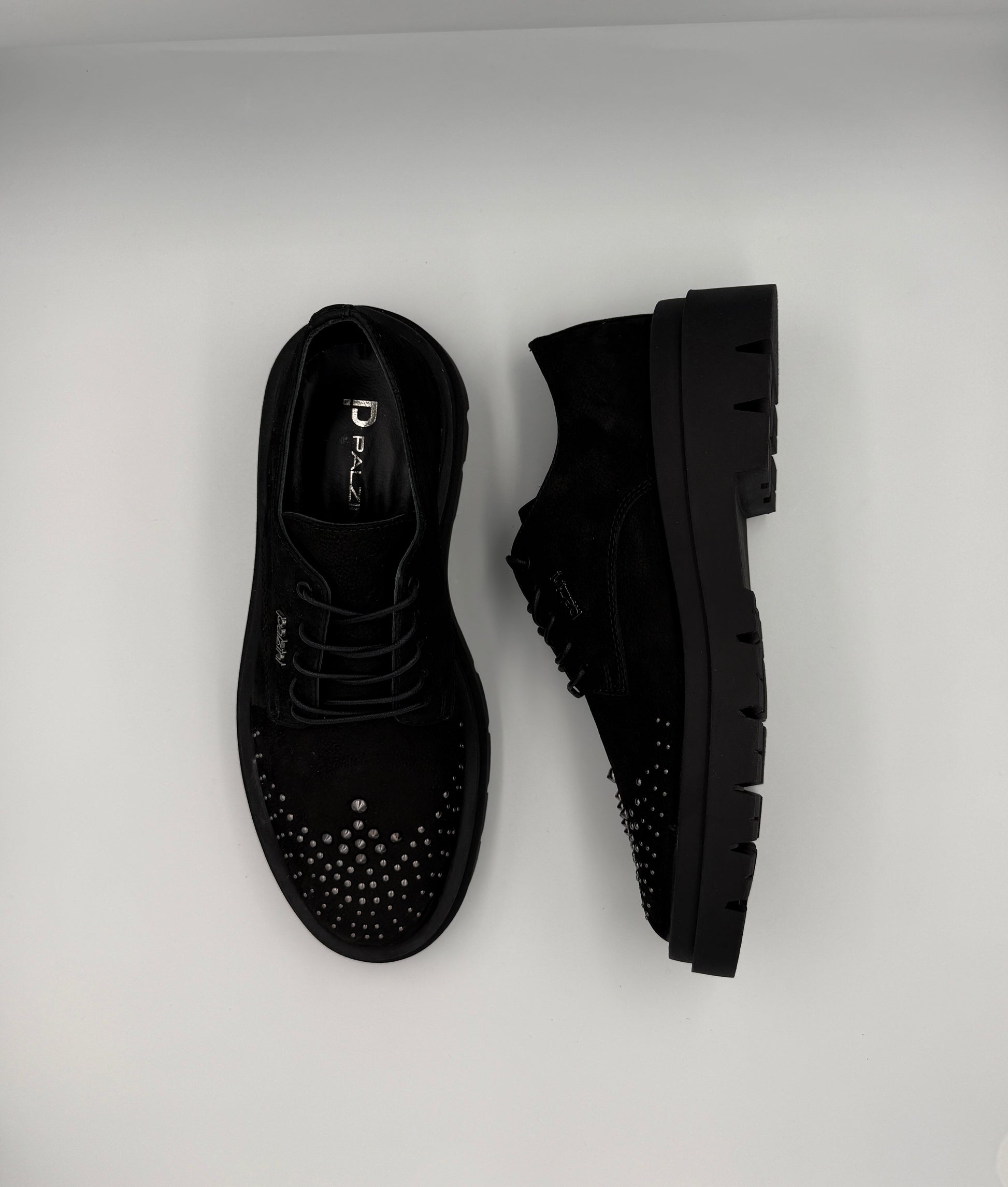 “NOIR ÉCHELON” CHUNKY BROGUES WITH SILVER DETAILING
