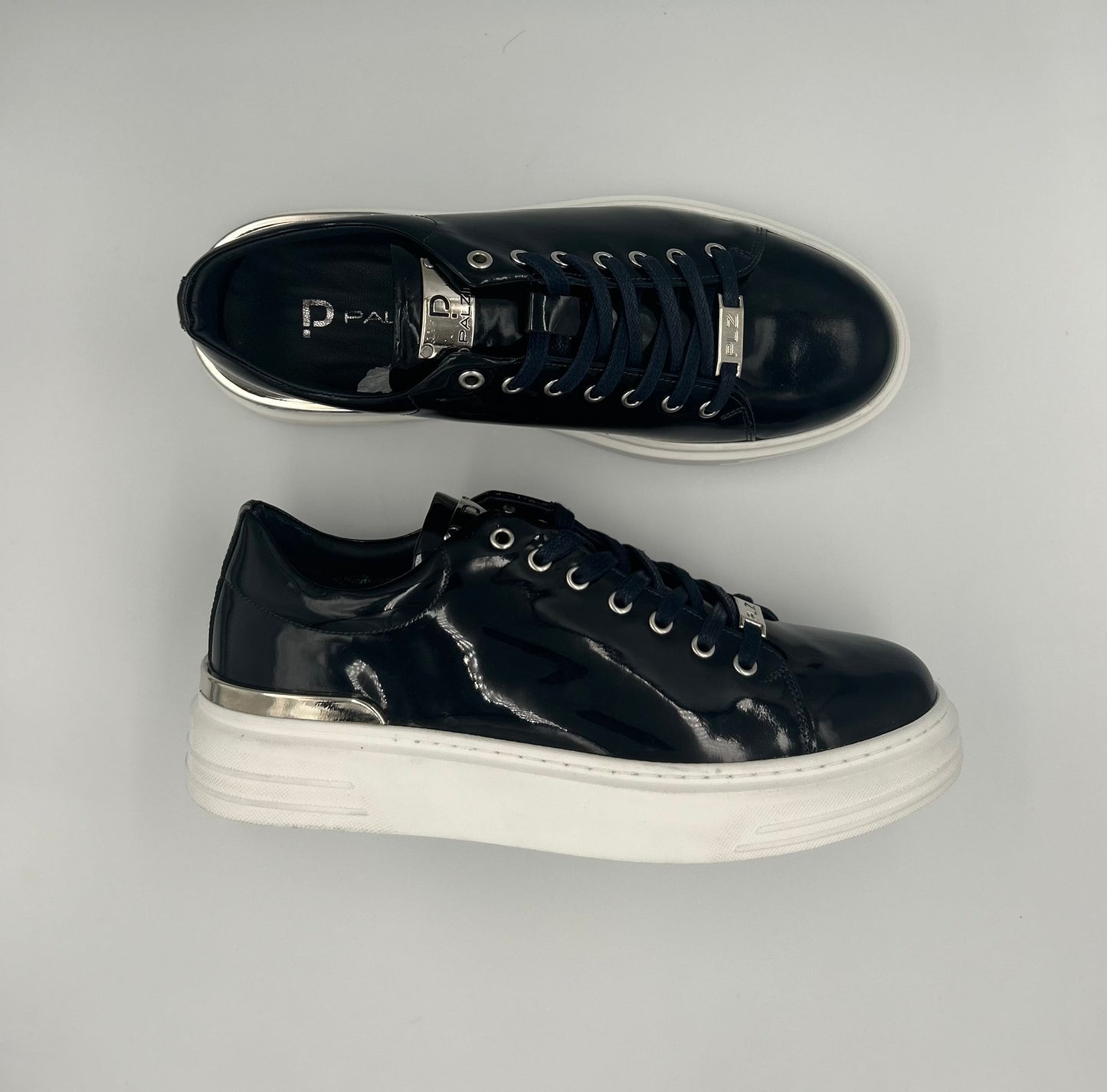 Introducing the Palzini "NAUTA V”: a low-top sneaker that exudes sophistication. Crafted from patent navy leather, it features sleek silver accents that add a touch of modern elegance. The "NAUTA V” combines luxurious materials with a refined design, perfect for those who appreciate both style and substance. Elevate your look with this exceptional piece