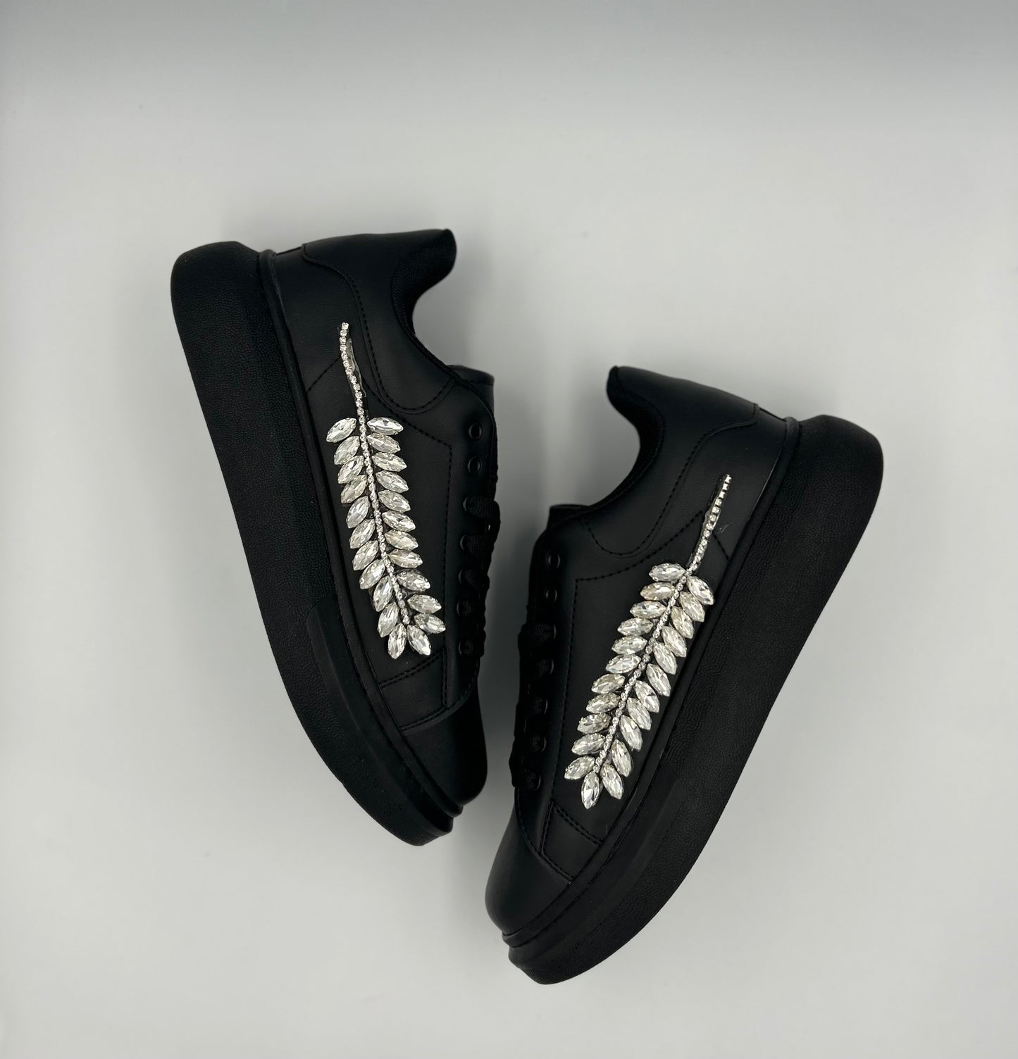 “VITTORIA” LOW-TOP BLACK SNEAKERS WITH LEAF ACCESSORY